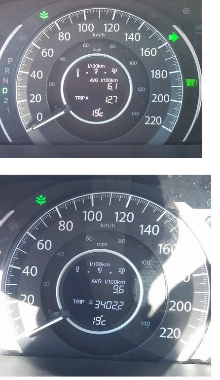У меня за 110 тыс. средний ровно 10л/100, но ниже 7.6 по трассе никогда не видел. Да и официалы по СВР 2.4 пишут Расход по городу 13.1 л. на 100 км Расход по трассе 7.4 л/100 км. Расход смешанный 9.5 л/100 км. http://honda.autoportal.ua/newcars/honda-cr-v-2010/cr-v-24-mt-sport-2010.html С того же сайта 2.0 расход 6.7 Обычно эти замеры и делаются на скоростях не более 90км/ч, вот поэтому столь низкий расход у нас быть не может (допускаю что в Торонто бензин намного лучше, но не думаю, что настолько).