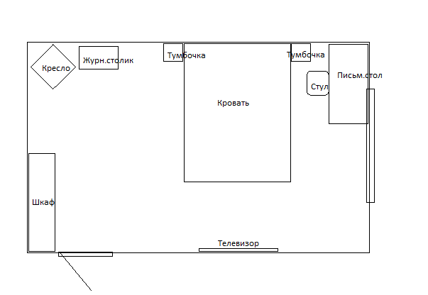 Из необходимого: 1)хотелось бы норм кровать, но пожалуй комнатка небольшая, так что раскладной диван (спальное место 2м+возможно ширина подлокотников сантиметров по 20-30) 2)комп стационарный 3)шкаф (хез какой пока, но нужен) 3)телек (не факт что буду использовать монитор, так что место для телека нужно, что бы комфортно смотреть с дивана)