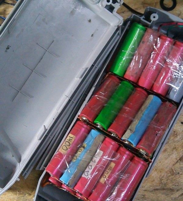 По переписці АКБ в ідеальному стані, вистачає на 65 км. В реаліях напівубиті аккумулятори від мертвих ноутбучних батарей. При такому способі підключення вони не просто НЕ можуть працювати, а ще й, можуть загорітися чи взірватися під час зарядки.