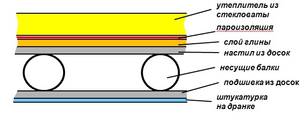 Все правильно написал: дранка,глина,балки попадают во "влажную" зону,теоретически могут загнить.Но это зависит от влажности в помещении (спальня или ванная допустим) и того есть ли в помещении и работает ли естественная вентиляция. Мне думается что на твой век (или пока дранка не поотпадает) такой схемы утепления хватит.