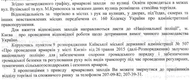 В очередной раз обозлившись на чертову ярмарку, нажаловался на http://1551.gov.ua/ и получил такой ответ:
