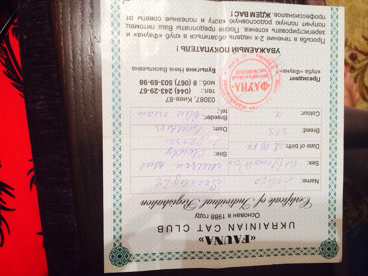 Не британец, а шотландка, и не родословная это, а метрика, выданная сомнительным клубом. Впрочем, это не имеет значения, ибо кошку жалко до слез - быть преданной в 7-летнем возрасте....:(