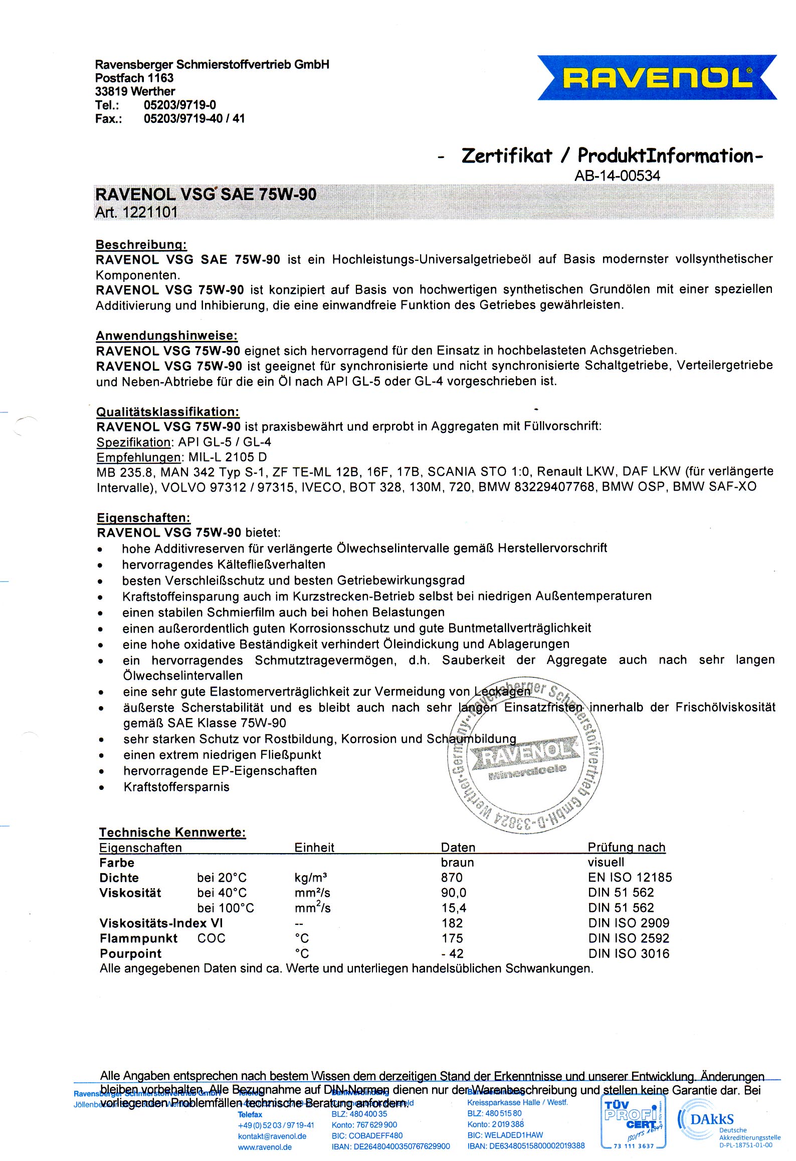 Предыстория такова: потихоньку подбираю себе в коробан масло, на данный момент залит Aral Getriebeoel EP Synth 75W-90, сказать что оно супер-пупер я не могу, тот же Castrol Syntrans Transaxle 75W-90, который я заливал сразу после покупки, мне нравился значительно больше, но это так сказать лирика. В общем уже давненько слышал хвалебные оды в сторону масла Равенол, типа Германия и все такое. Ну думаю надо сравнить ТТХ моих прошлых масел с Равенолом. Не долго думая, иду на сайт официального представителя в Украине, выбираю подходящий моей машине продукт тыц и просто поражаюсь характеристикам. Йопта, нынешний Арал уступает по всем хар-кам. Но тут, больше наверное от любопытства, решил я заглянуть на офсайт в Бундесе, тыц и был сражен наповал. Первая табличка утянута с нашего сайта, вторая с немецкого.