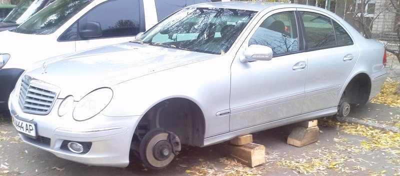 Сегодня с утра на ул. Флоренции 1 (Русановка). Неохраняемая парковка на открытом месте (не глухой двор). Фонари на улице рядом светят но мерсу это не помогло. Вчера вечером (уже было темно) уезжал - этого мерса вроде еще не было.