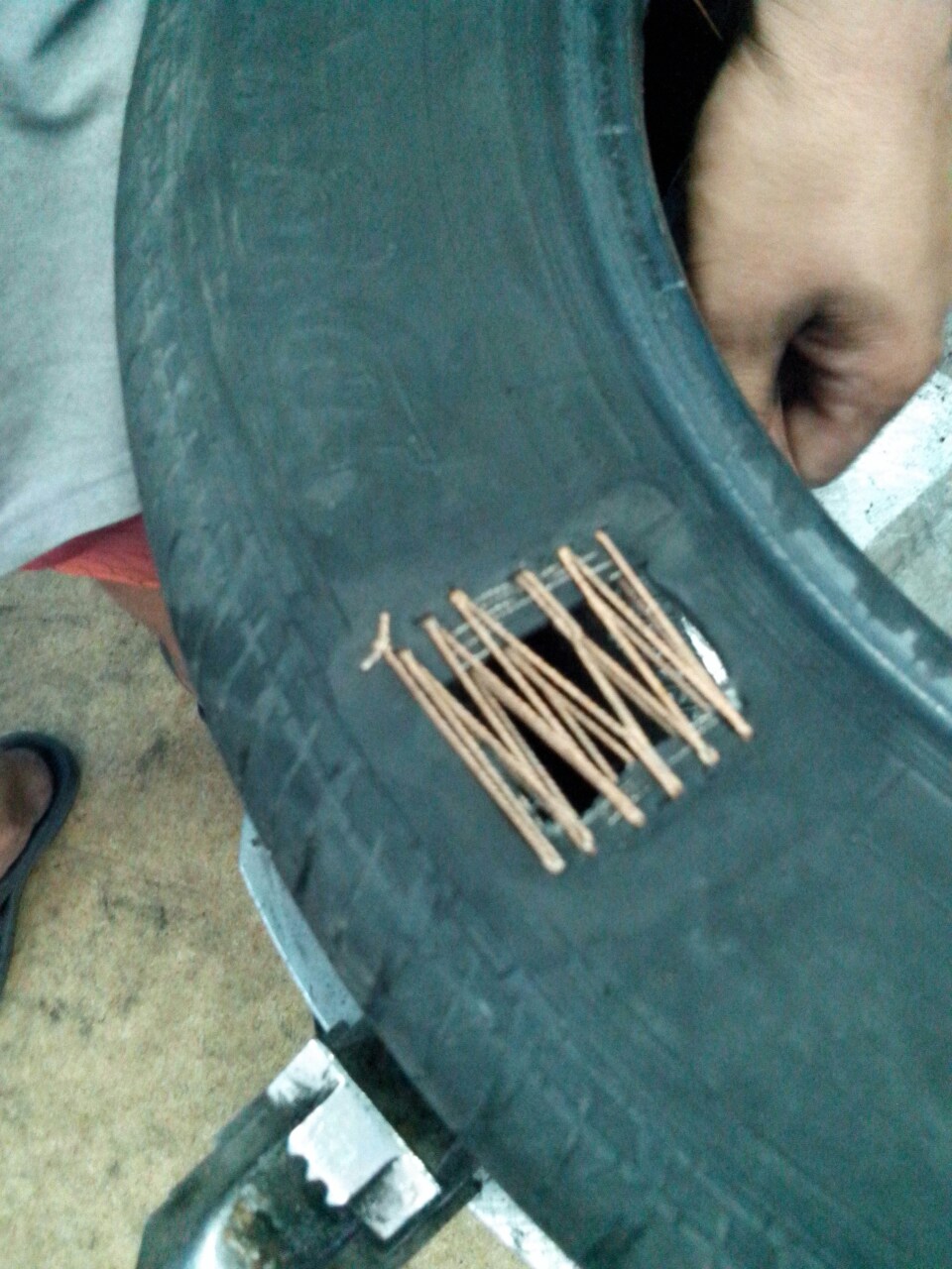 Сравните свое проблемное колесо с этим. Делали клиенту летом, вчера приехал переобуваться, с шиной все ок. ни каких проблем. Хотя мы не хотели это делать. Клиент сказал делать!!! Так что катайтесь и посматривайте на ремонт.