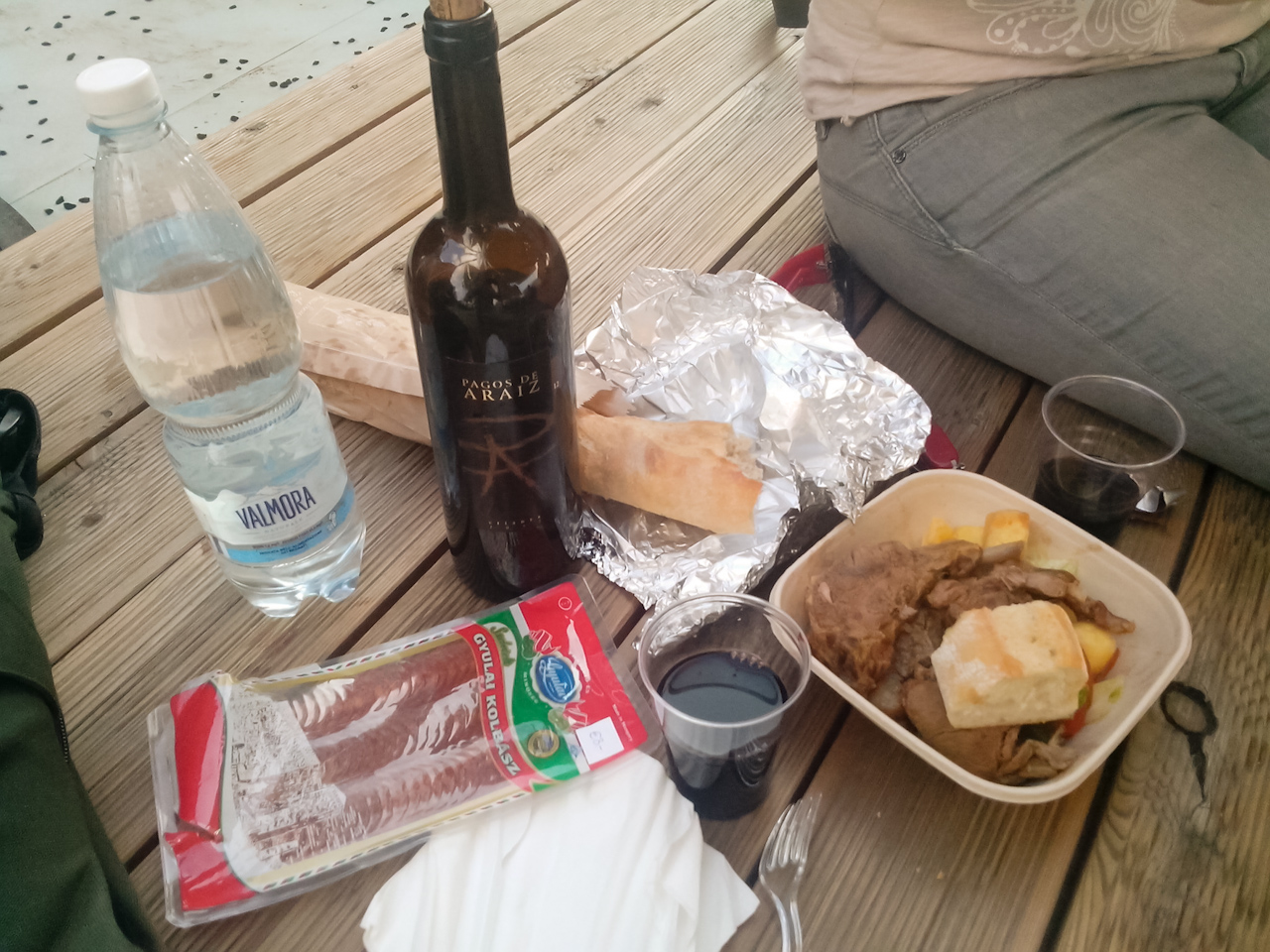 Вот чем мы там занимались, международную коллекцию собирали к ужину: - настоящий французский багет (в Ита выпечка не настолько хороша, ещё круассанов на завтрак взяли) - вино - Риоха (Испания) - мясо от аргентинцев (баранина, ломаем стереотипы - колбаса - мадярская, с паприкой Ну плюс запивали то кофе с кардамоном (из павильона Судана), то непальским чаем-масала, то афганским напитком из шафрана и мёда... Ещё ели салат из креветок и фруктов (Ангола) - названия половины из которых я не знаю - короче, с точки зрения "интересно покушать" это просто мега-ивент С точки зрения зрелищ - павильоны очень разные и неоднородные, тут на вкус и на цвет; также нам одного дня не хватило увидеть все (мы дошли только до зоны Италии - кардо, главная поперечная аллея, потому не видели примерно треть выставки). Ещё мы смотрели специальное шоу Cirque de Soleil, но они только в августе были - впрочем, ежевечернее лазерное шоу у Древа жизни осталось, можно заценить.