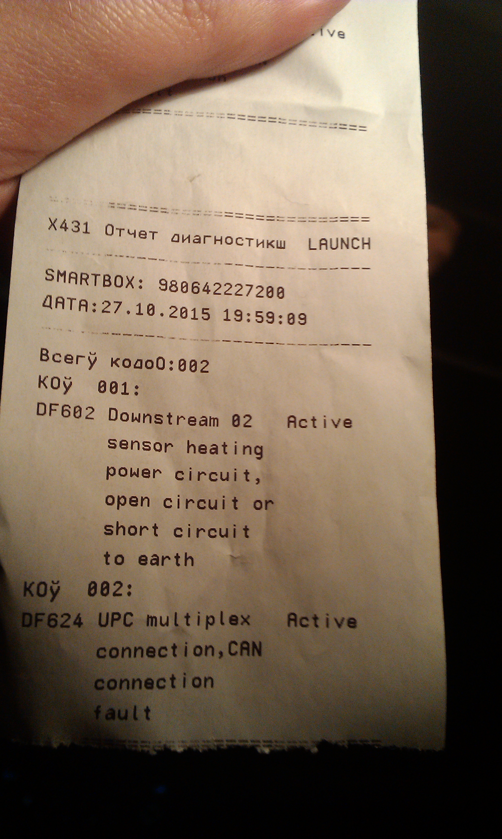 История продолжается. Заехал вчера к официалам на диагностику, говорю так и так, выскакивает такая трабла, надо бы диагностику сделать (приехал именно когда на приборке светился аккум, STOP и LOW BATTERY). Сделали. Приговор: ремонт или замена генератора. Я им говорю что три дня назад смотрели генератор, поменяли: щётки, подшипники, вал. Они типа едь к ним тогда и разбирайся, мы можем взять на ремонт но прийдёться платить. Поехал я где делал генератор, как раз опять ошибка выскочила, приезжаю, всё норм говорят, гена жив и заряд идёт, подключили комп, ошибку выдаёт DF602 и DF624 (Связь с блоком защиты и коммутации по мультиплексной сети) - 1.DEF (Неисправность соединения CAN) и 2.DEF (несоблюдение экологических норм). Сказали что трабла в коммутационном блоке, через него и выскакивает ошибка. Поехать к оффам и поругаться, чего они про ошибку DF624 ничего не сказали? Какие последствия в езде могут возникнуть? Проехал более 300км после ремонта гены, всё норм, толька эта ошибка мучает. Что делать???