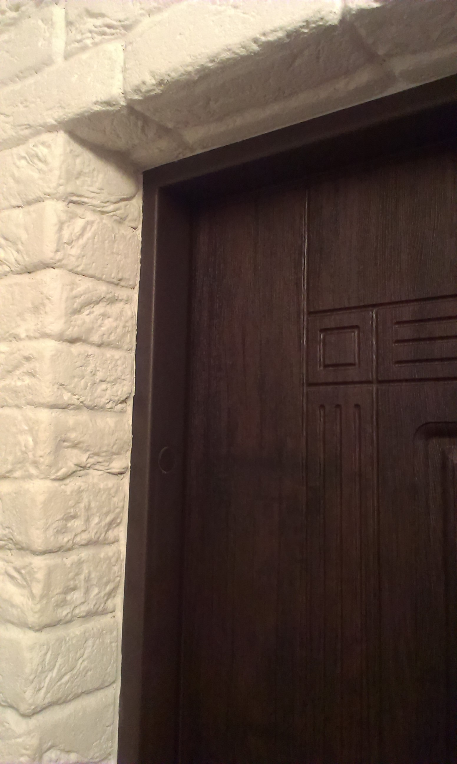 Дверные откосы также нужно кирпичом обложить.