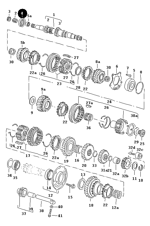 Я так понимаю, нужно смотреть схему, где коробка передач? Поз.4 (seal) - это оно? Поз.1 - drive shaft.