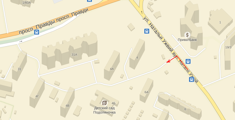 Вы пишите "с ул. Ужвий к садику", а на карте я так понял, хотите показать "с проспект Правды".