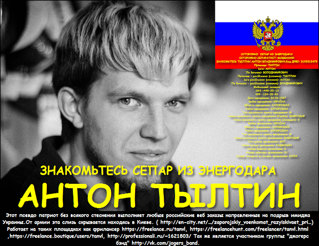 Данный патриот без всякого стеснения выполняет РОССИЙСКИЕ веб- заказы подрывая этим имидж Украины.