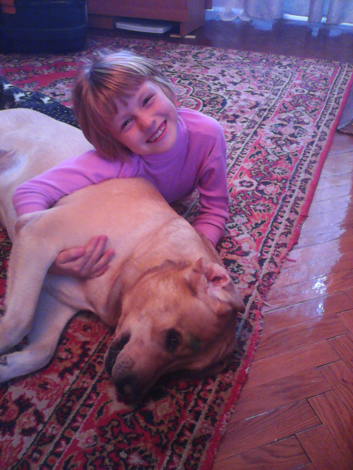 Вчера средняя дочка принесла в дом лабрадора Ему всего то 3.5 недели. Голодный, холодный, с кучей блох...короче один из семи. По словам женщины,, которая его продавала за символические деньги, живет собачкина мама на улице в частном доме. Т.к дело было к ночи, а собаню надо кормить, купили детскую смесь. Ест жадно и с удовольствием)) Ночь без сна(один спать не может. Спит 15 минут и вылазит из коробки), 6-ти разовое питание, туалет на пеленку и вот, после купания в антиблошином шампуне, эта маленькая жучка спит в одеяле у меня на руках))) Началась новая собачья эпопея