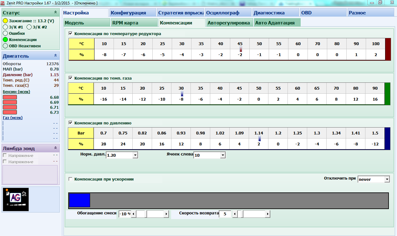 1) проверил тестером на одной температуре разница сопротивлений датчиков около 2-3% 2) показания датчика на редукторе и датчика газа отличаются незначительно. прилагаю скриншот на прогреве. На горячей разница градусов 5-10.