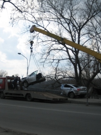 А Ауди эту я в тот день видел, ее в сторону Броваров по броварскому проспекту везли на этом эвакуаторе... Жутко.