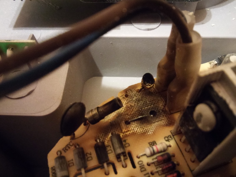 Разобрал, видно был скачок напряжения, предохранитель один или два? сгорели напрочь, и варистор это наверное, тоже аж треснул.