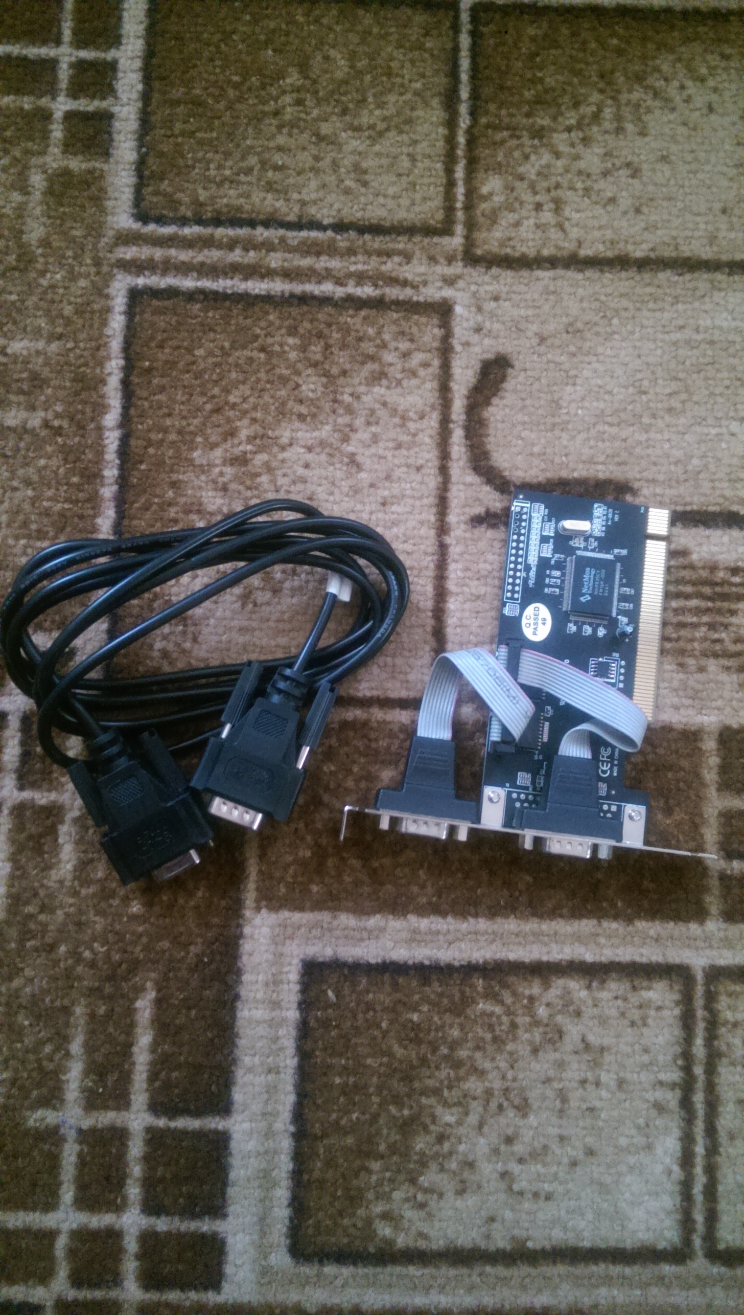 Ну, обычный комовский кабель не подходит к бесперебойникам АРС из за другой распиновки, поэтому пришлось искать и покупать именно АРС-шный "940-0024Е". Также на материнке не было СОМ-порта, пришлось докупить контроллер PCI 2xCOM NetMos Nm9835CV, так что вышел такой себе комплектик для калибровки ИБП АРС . Мне он уже не нужен, может, кому надо будет, продам по себестоимости: кабель - 75, контроллер - 80...
