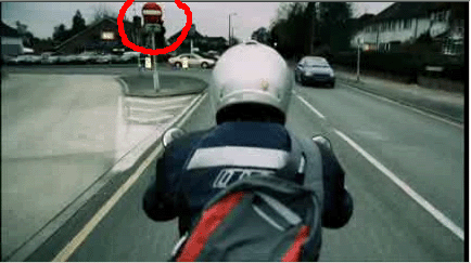 ролик хитро сделан, мы не видим мотоцикла из-за лица водителя , водитель то его должен 100% видеть и в первый раз.