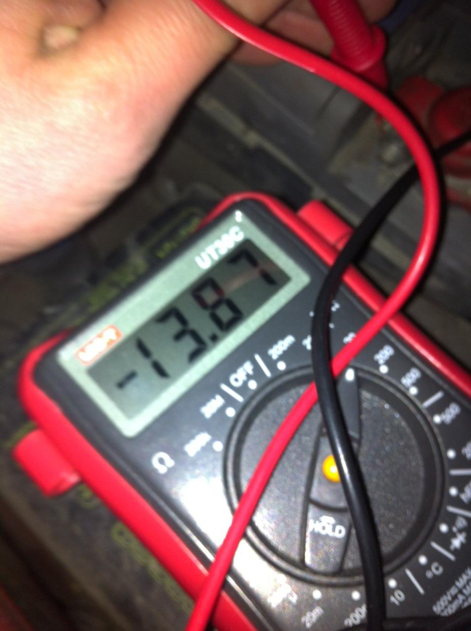 З,явилася підозра, що гега недозаряджає акумулятор. Поставив вольтметр. Цікава виходить динаміка: після запуску двигуна напруга 14, 14.1 В. Але через 1-2 хв. починає спадати і за 5хв знижується до 13,4В Від обертів двигуна та навантаження мережі майже не залежить - +-0.1В