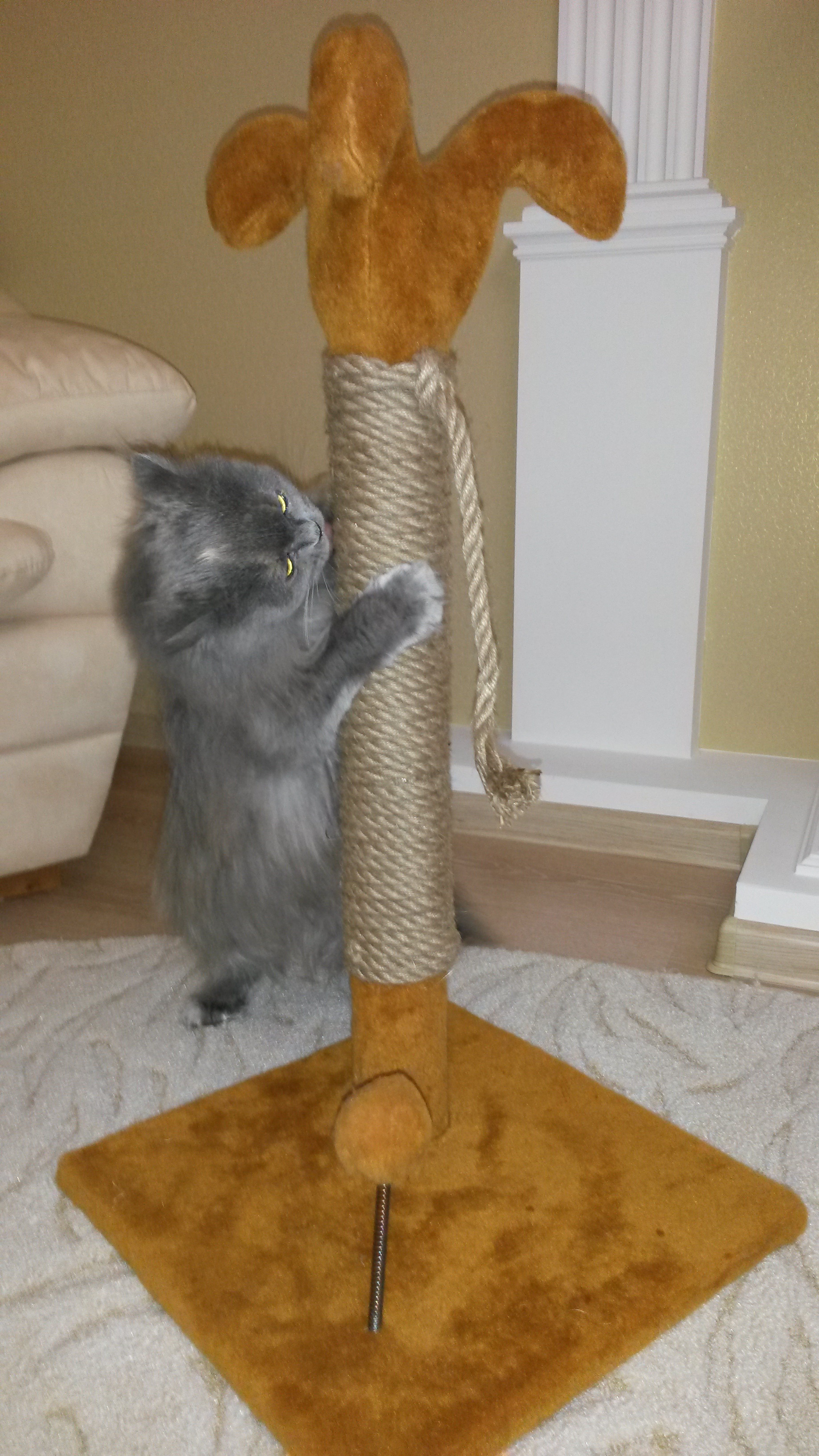 В общем имеем когтеточку! За определенный период времени, веревка, которой обмотан столбик, пришла в ужасное состояние под воздействием когтей Стал вопрос о покупке новой когтеточки... и тут меня осенило, неужели нельзя просто намотать новую веревку?