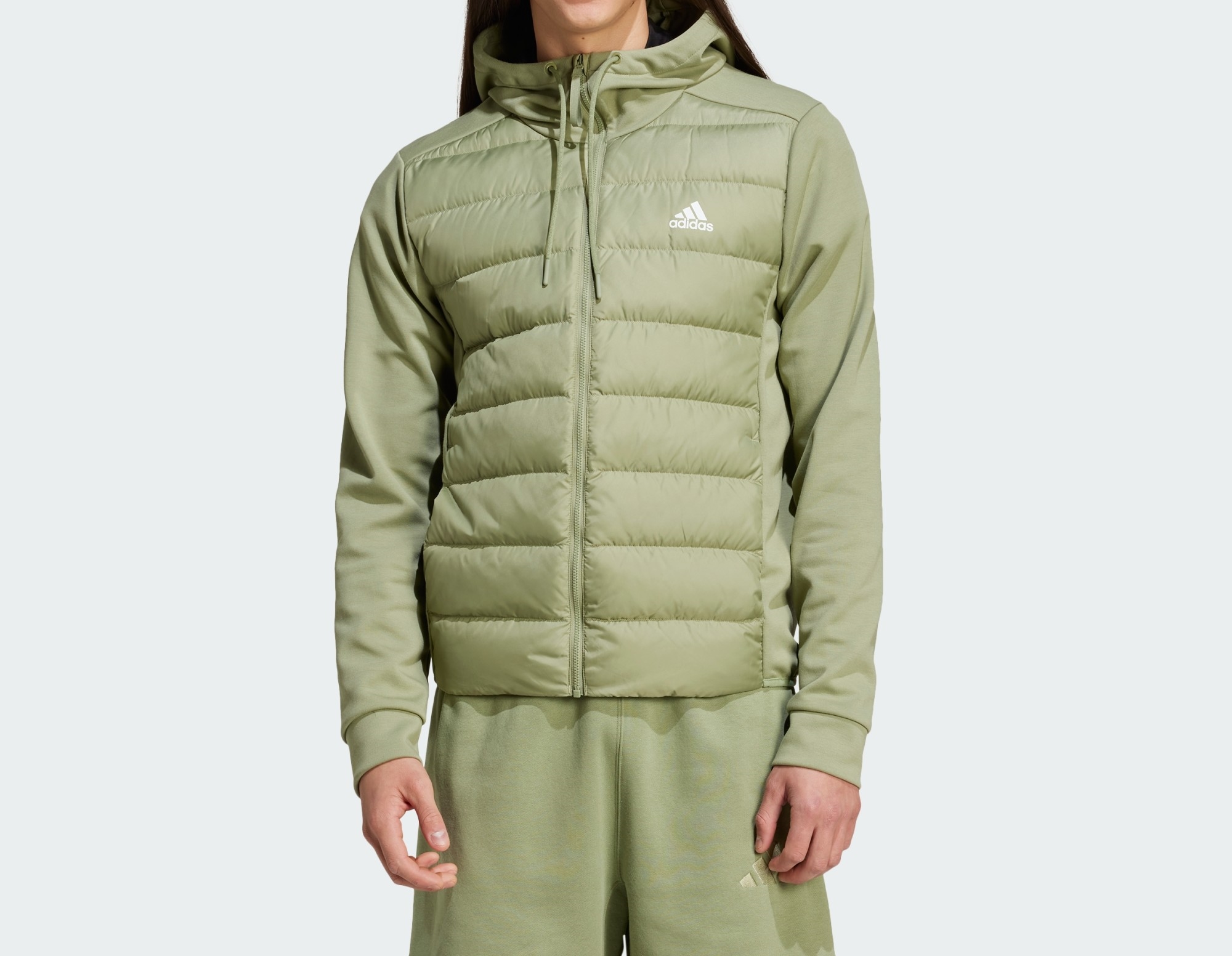 Знижка 300 грн Гібридна куртка пуховик Adidas Essentials. Оригінал. З США. Нова Сезон осінь - весна – З капюшоном Наповнювач: 80% качиний пух, 20% пір'я Розміри:   • М: півобхват грудей – 56 см, рукави від плеча – 68 см, плечі – 44 см, спина від капюшону – 68 см   • XL: півобхват грудей – 64 см, рукави від плеча – 68 см, плечі – 51 см, спина від капюшону – 73 см – Кишені: по бічних швах з потайними кнопками – Покриття: водовідштовхувальне 3000 грн Нова ціна 2700 грн