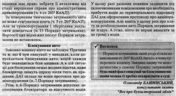 Коротко. Заехал в банк на Расковой. Выхожу - висит блокиратор. Блокираторщик выдать "Додаток №2" отказался. Говорит, езжайте на Леонтовича. Позвонил Штольцу, он меня проконсультировал. Шестигранник вожу с собой. Выкрутил верхний болт. Сдвинул шайбу начал выковыривать ответную часть болта. Блокираторщик, видя это дело, сам предложил снять блокиратор. Говорит - "Вы сейчас его так раскурочите, что я потом сам не сниму." Видно, их за это дрючат. Вот и всё. Огромное спасибо Штольцу, Руденге, и Драйверу 251 за моральную поддержку. Всем коньяг!" З.Ы. Я только одного не пойму, что блокировка теперь законна?