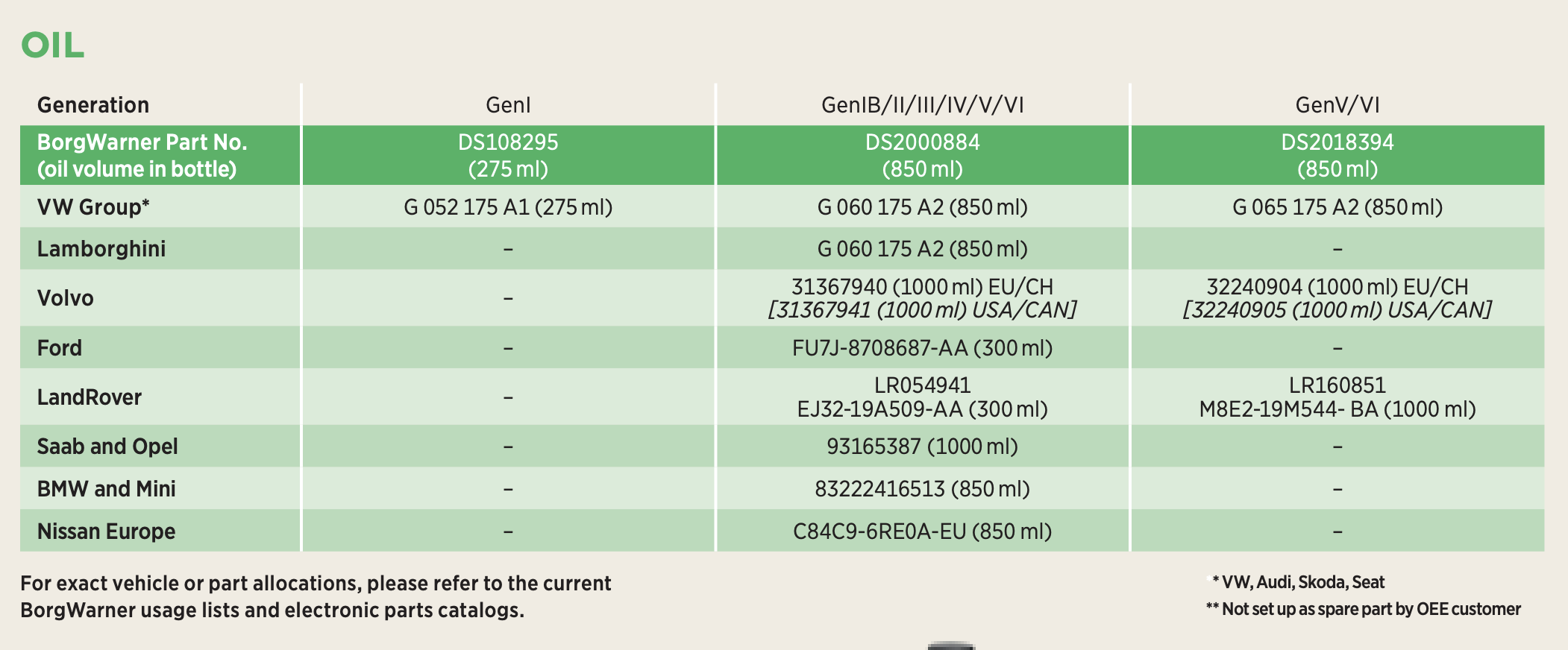 Всім дякую! Але трохи незрозуміло: вище казали про те, що масло однакове (за умови, що покоління халдексу одне), а нижче в таблиці зазначені різні специфікації по різним виробникам авто. То як правильно?