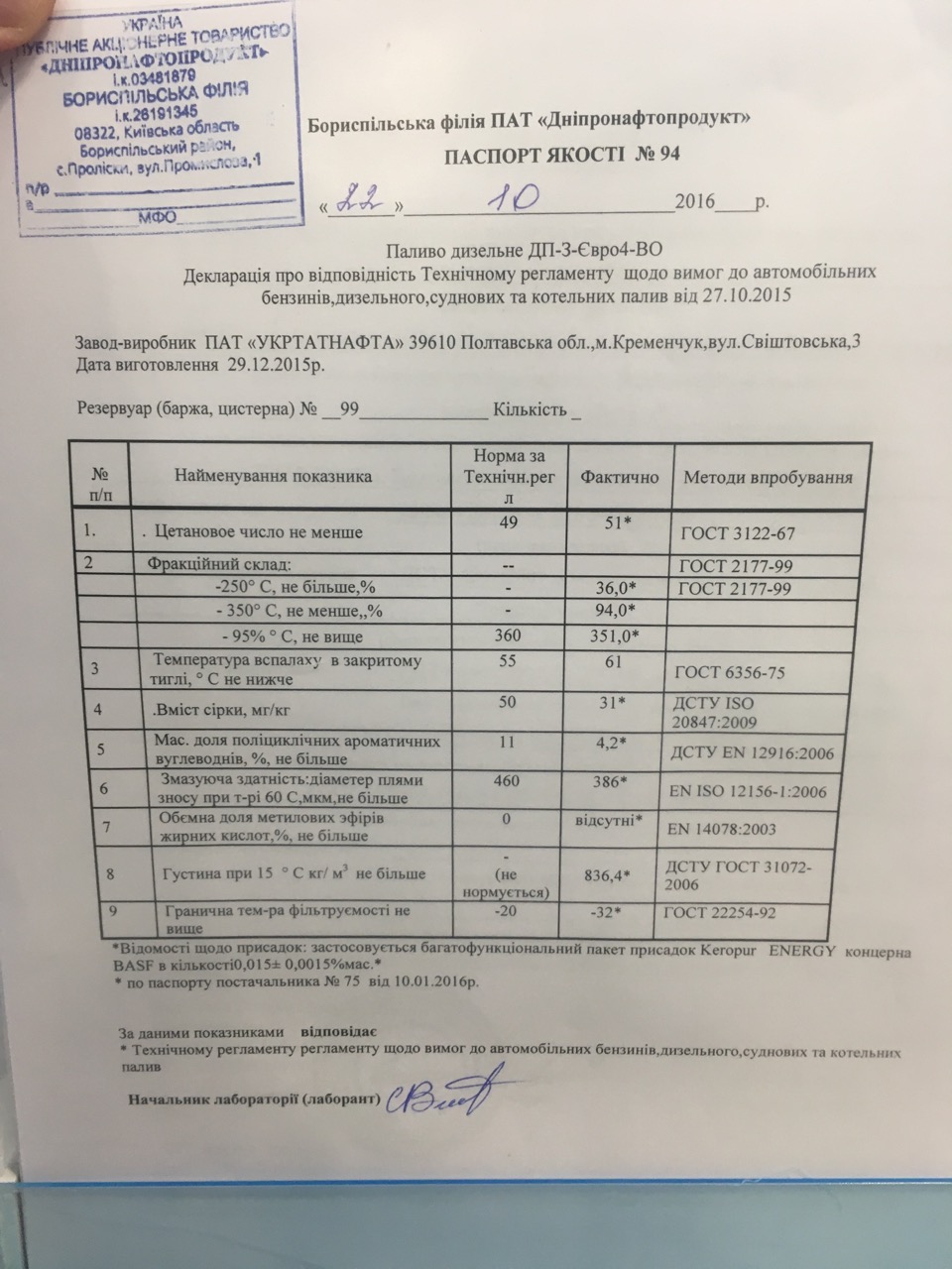 Обратите внимание на дату производства 29.12.2015, свежая уже будет Евро 5, т.к. с марта 2016 уже только её производят.