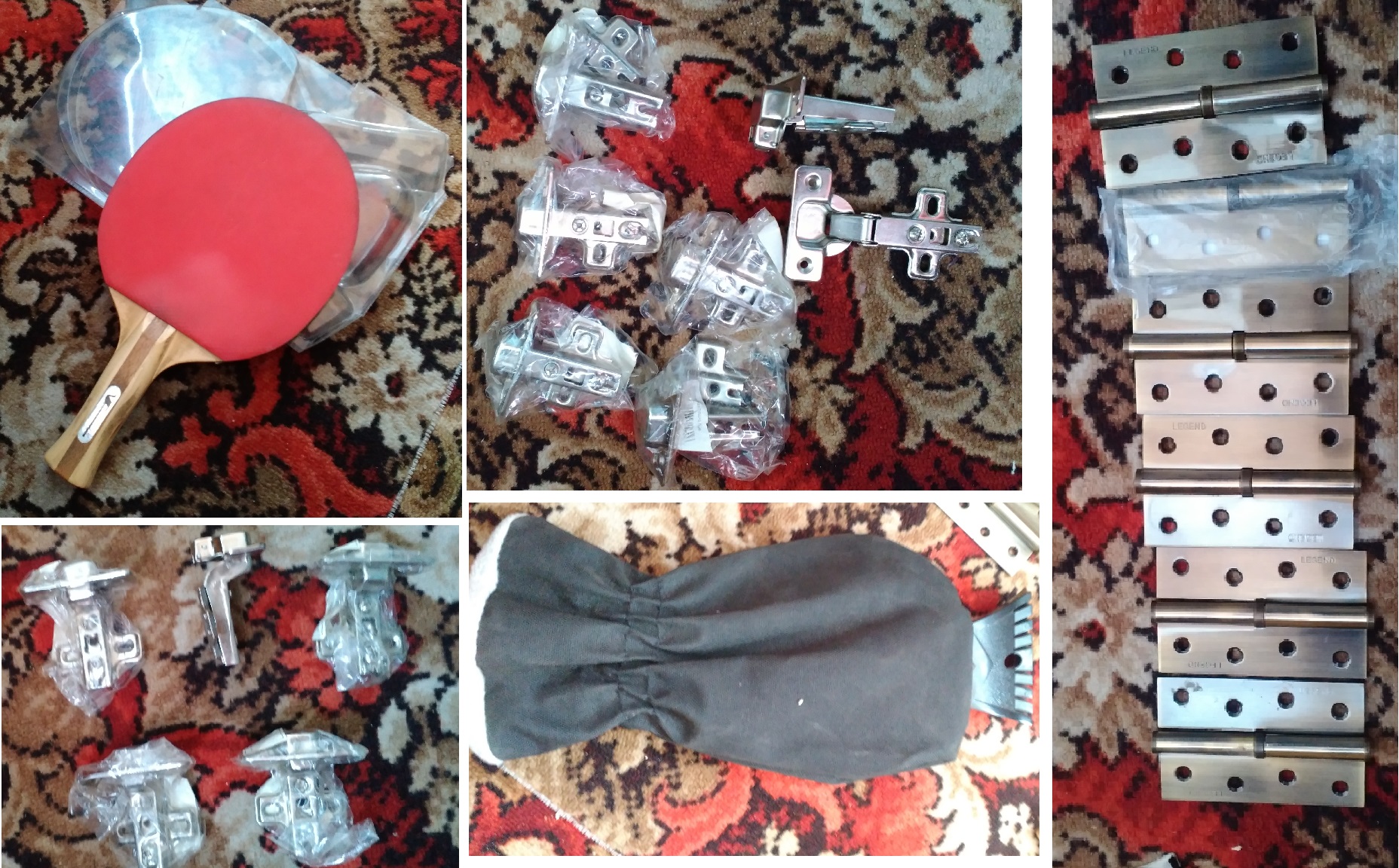 Порылся на балконе. Нашел: - ракетка теннисная - петли дверные разные - петли мебельные - зимний скребок для льда