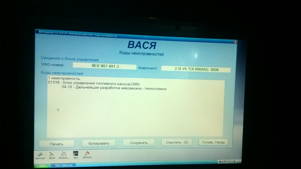 Доброго время суток!!! На днях в машине Ауди А4 Б6 2.5 тди загорелась лампочка (свечей накала), заехал на диагностику,выбило ошибку 01318-Блок управления топливного насоса (J399) 34-10- Дальнейшая разработка невозможна-Непостоянно