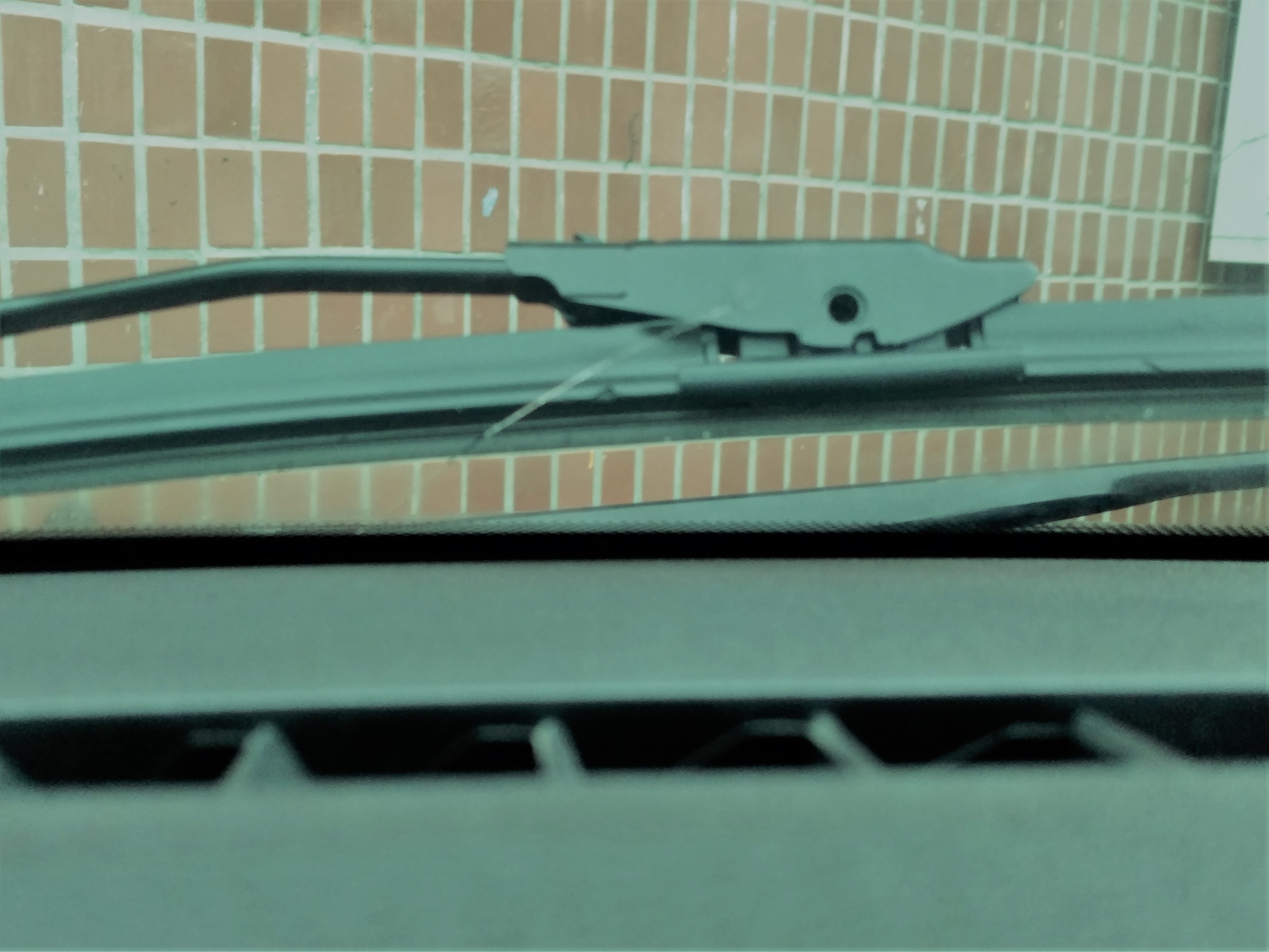 По фото плохо видно, но я чет уверен, что трещина начинается в аккурат , где поводок крепиться к трапеции. На моей клио 2 нижняя резинка лобового крепиться на пластик, который закрывает трапецю. Я бы снял его и посмотрел, есть там скол или нету.