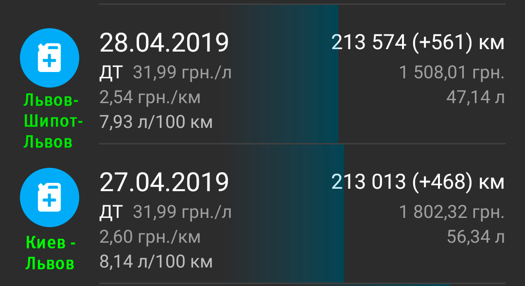 Съездили во Львов на Пасху + со Львова прокатились к водопаду Шипот. Погодка, конечно, не ахти, но, в целом, хорошо провели время:) Средняя скорость по БК - 74 км/час (никогда не понимал, как бк считает среднюю скорость), расход Киев-Львов и Львов-Шепот-Львов на скрине. В принципе, достойно для 2х тонного сарая с 6 гуманоидами на борту.
