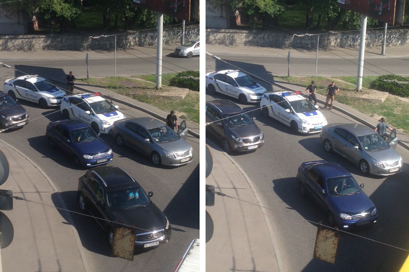 номер 0945 на круг заходил со второго ряда, при этом говорил по телефону. В результате догнал серую toyota... Сори, что не видео) Святошин, под мостом в сторону Новуса/МакДональдса