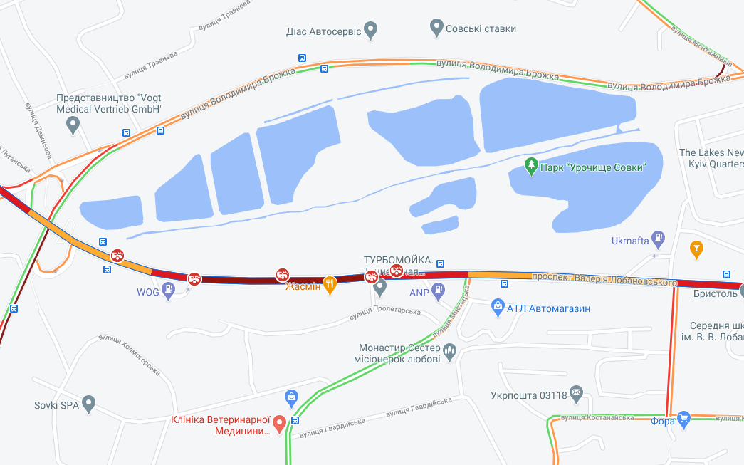 открыл Гугл карты - так необычно что практически все дороги на запад и юг от Киева - оранжевые, даже между сёлами.