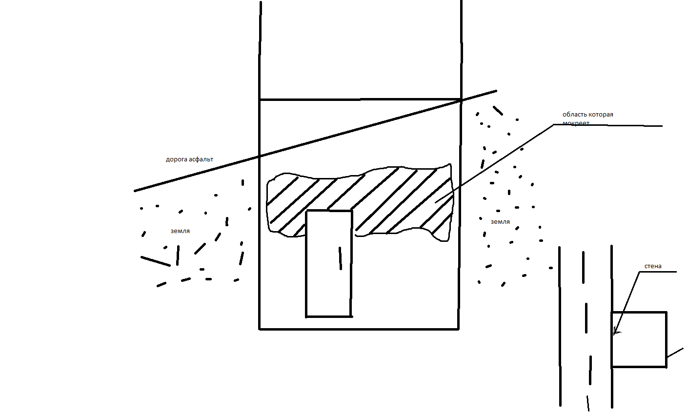 Якби бачити фотографію цієї стіни що мокріє, дороги і асфальту зі сторони вулиці було б простіше розуміти що там.