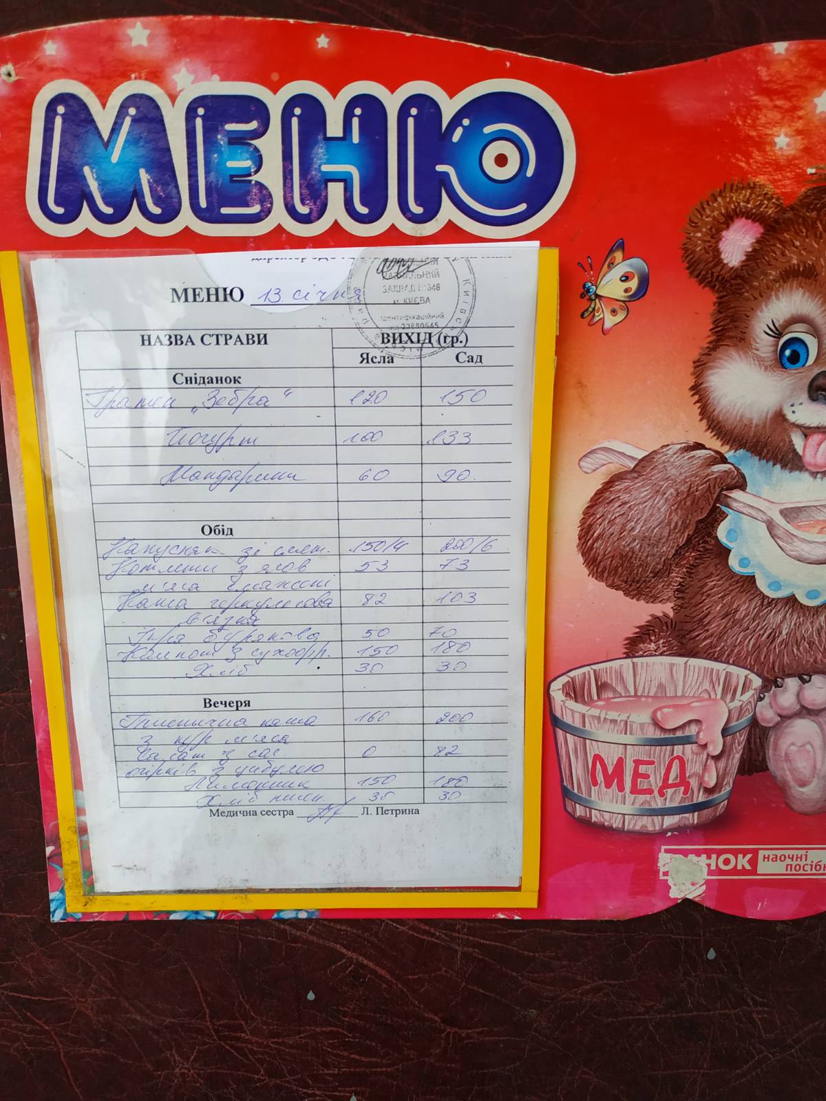 Ми ще не в школі, а в дитячому садку, але маємо проблеми з цим меню...