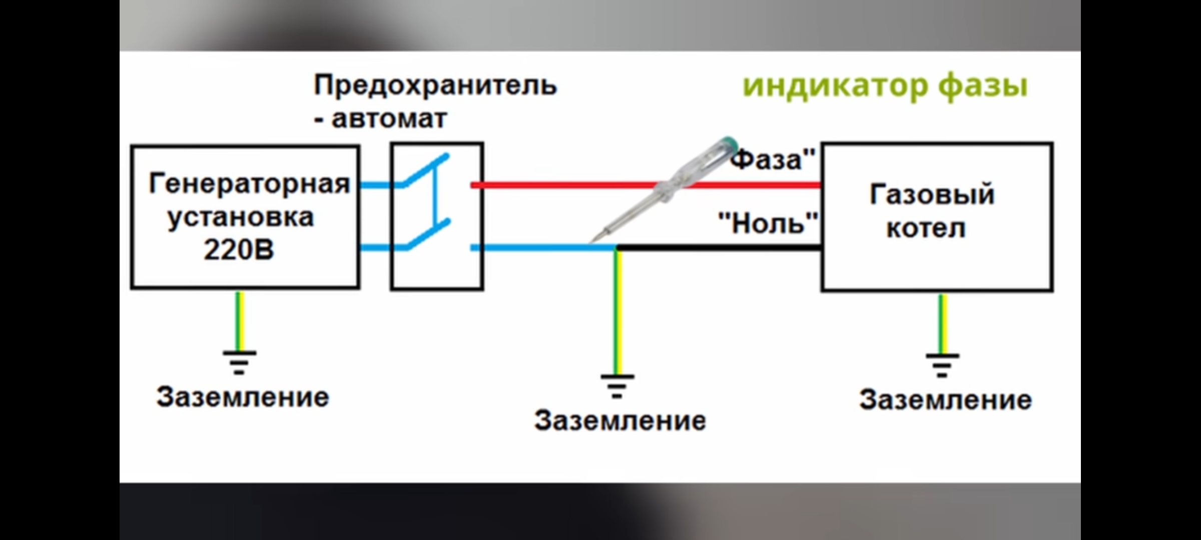 Соответственно я бы занулил N на землю и на входном щитке и в генераторе и в котле. Должно всё работать. А земной шарик стал бы неким развязочным трансом )