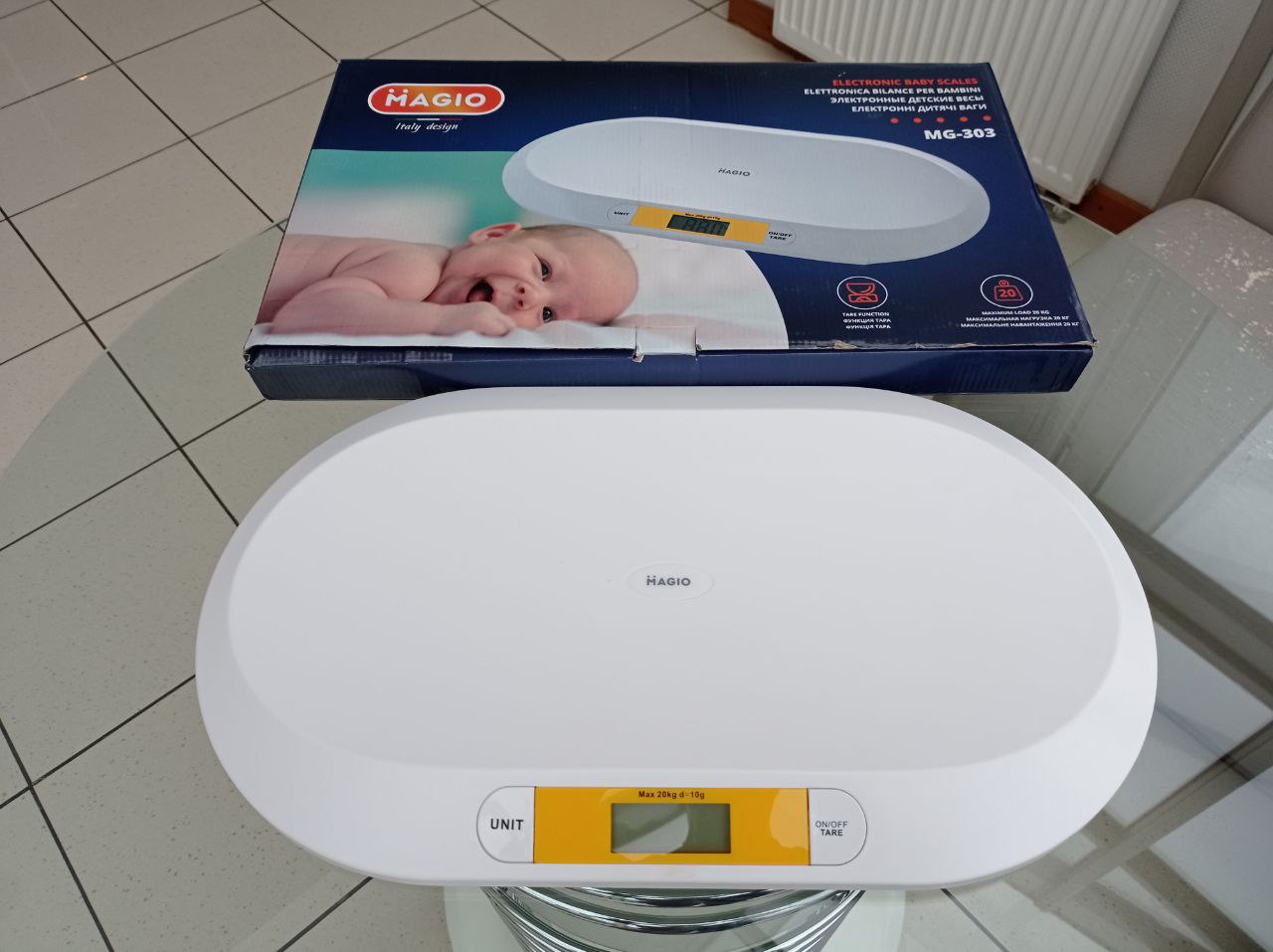 Причина уцінки: невеличка кривина ніжок, яка на точність зважування не впливає. Потертість картонного пакування. Мінімальна ціна на https://hotline.ua/ua/bt-detskie-vesy/magio-mg-303/ - 844 грн. Наша ціна: 580 грн.