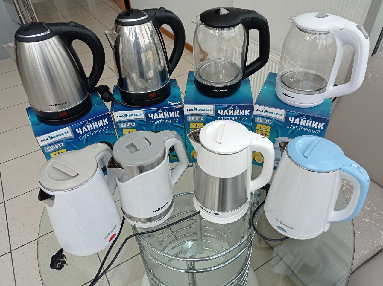 Бюджетні моделі SB-010/011/012/013/014/015/016/017 – Потужність: 1500 Вт – Об'єм: 1,8 л – Матеріал корпусу: нержавіюча сталь/нержавіюча сталь із пластиковим захистом/термостійке скло – Прихований дисковий нагрівальний елемент – Індикатор включення – Захист від перегріву – Автовідключення