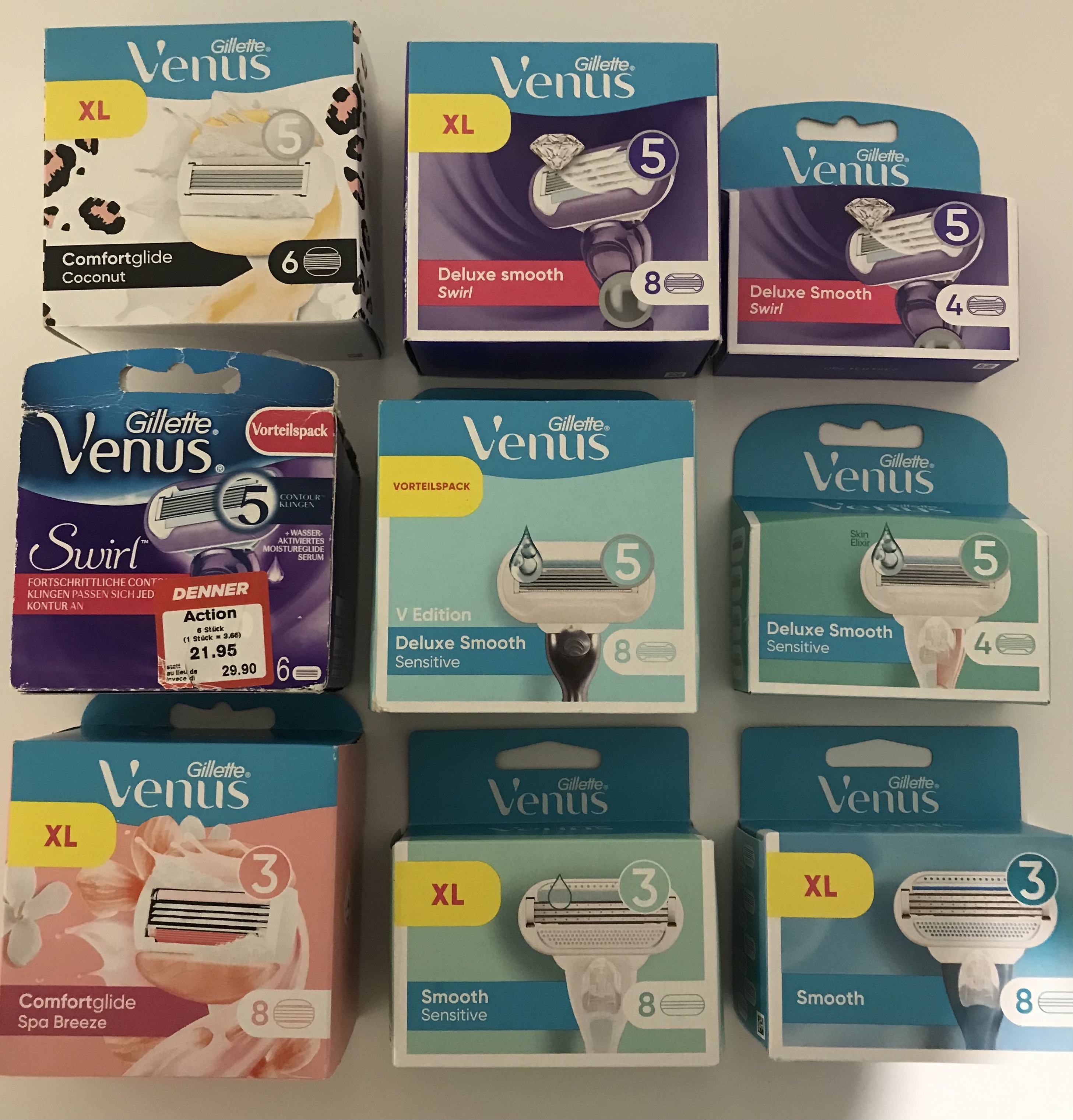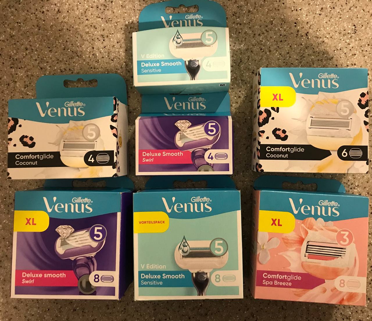 Venus smooth5 упаковка 4 картриджі – 555 гривень Venus swirl упаковка 4 картриджі – 585 гривень Venus smooth5 упаковка 8 картриджів – 1100 гривень Venus swirl упаковка 8 картриджів – 1150 гривень Venus Olay упаковка 4 картриджі – 585 гривень Venus Olay упаковка 6 картриджів – 870 гривень Venus comfortglide spa breeze упаковка 9 картриджів 950 гривень Venus comfortglide spa breeze упаковка 8 картриджів 850 гривень Venus comfortglide spa breeze упаковка 4 картриджі 440 гривень Venus smooth3 (звичайний Venus) упаковка 12 картриджів – 850 гривень Venus smooth3 (звичайний Venus) упаковка 8 картриджів – 630 гривень Venus smooth3 (звичайний Venus) упаковка 4 картриджі – 325 гривень