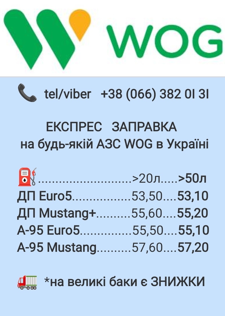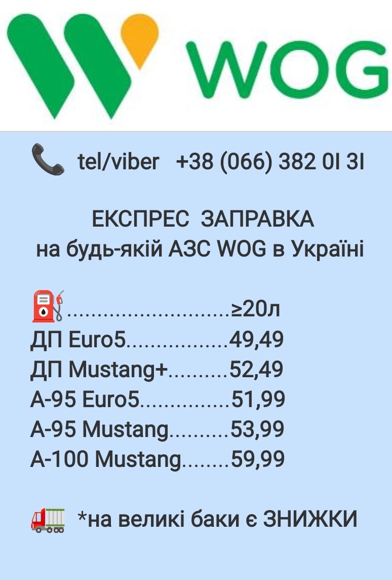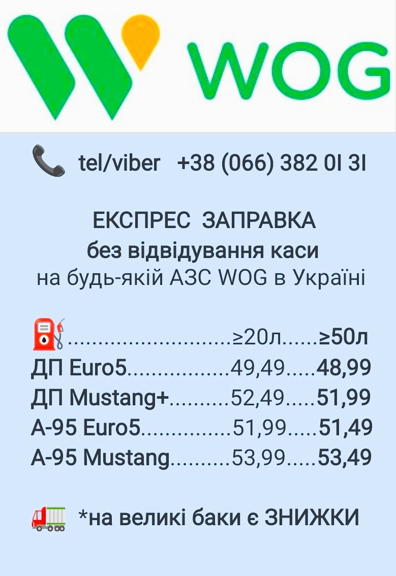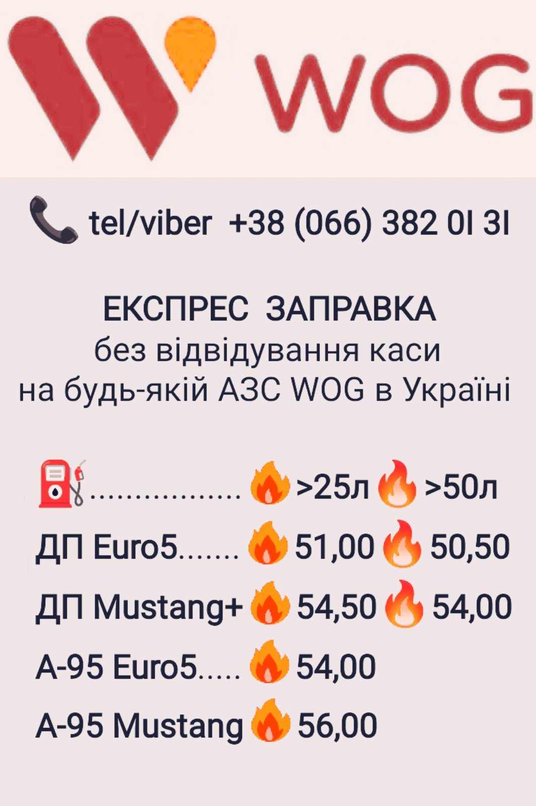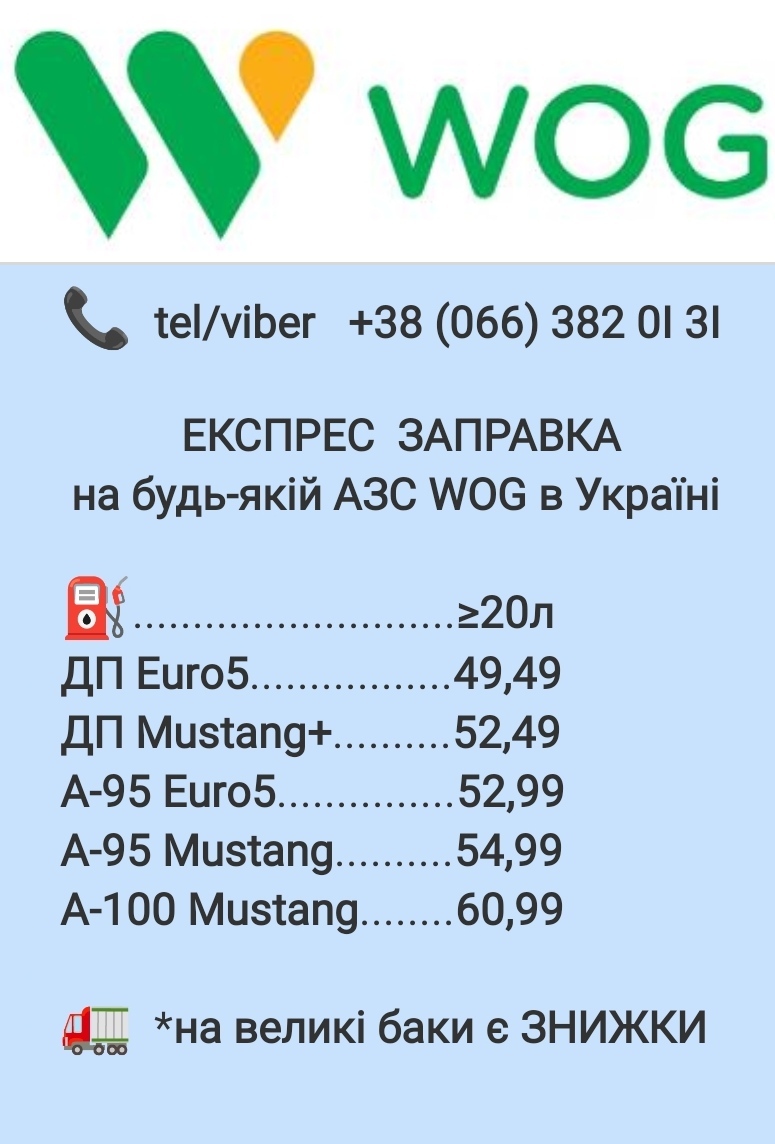 WOG Дистанційна заправка до повного, або визначена кількість, без відвідування каси та на будь-якій АЗС мережі WOG в УкраїніМожливість заправки під час повітряної тривоги !!!
