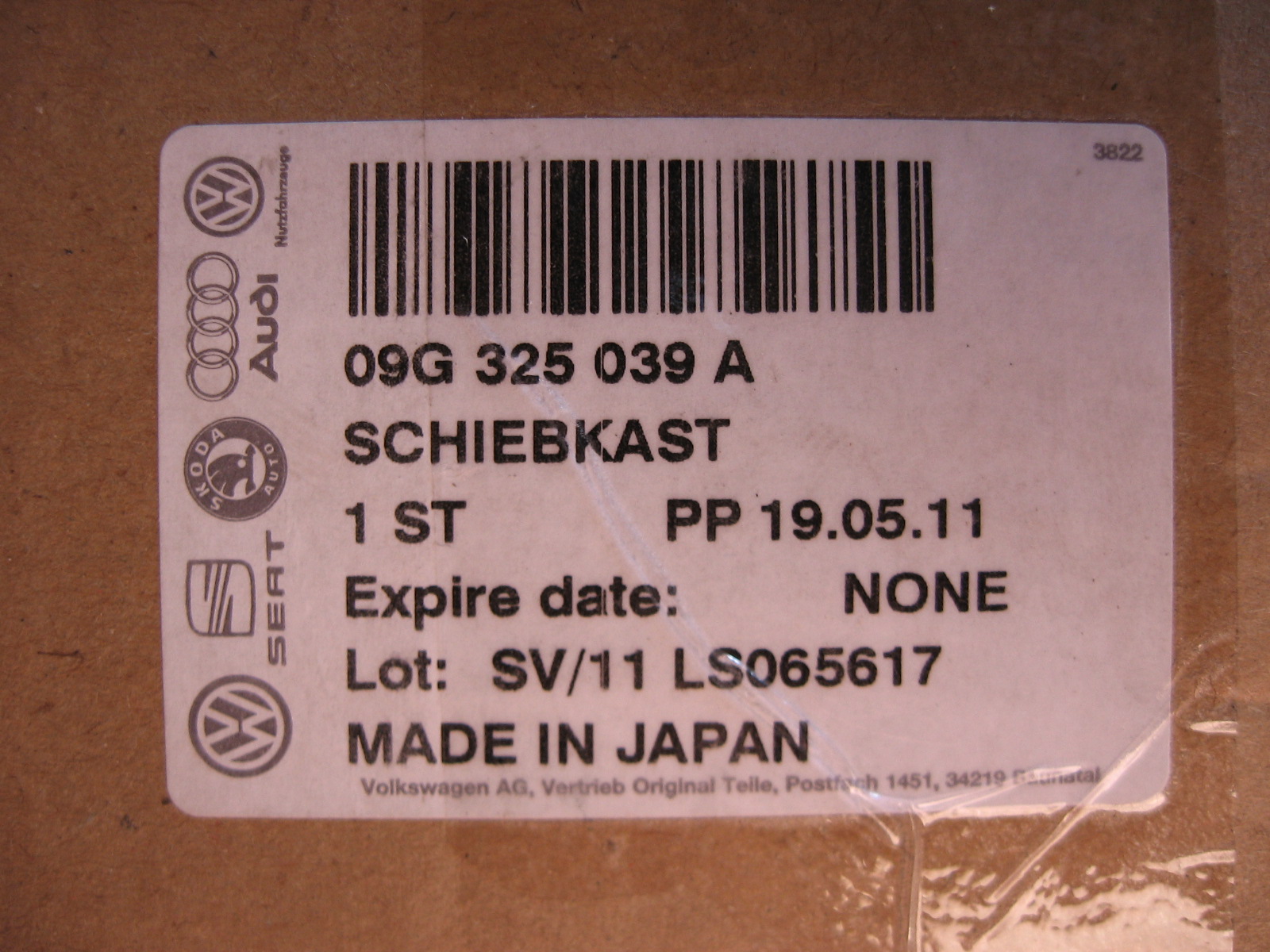 Стікер з упаковки аналогічної запасної частини.