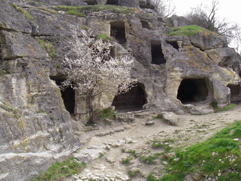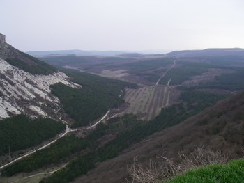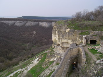 Дорога от церкви с действующим мужским монастырем к крепости Чуфут-Кале....