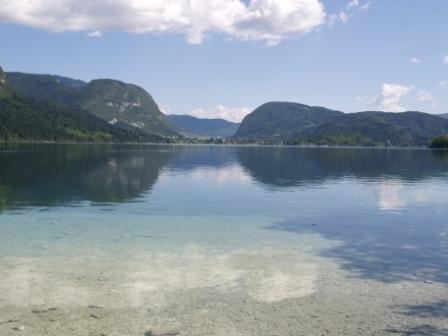 Утром взбираемся на высоту местного замка – вид на озеро и окрестные горы оттуда невероятно красивы. Делаем довольно удачные кадры, на машине колесим вокруг озера (что кстати по некоторым дорогам под замком нельзя, но мы не заметили вовремя знак. Хорошо еще что полицаев не встретили), все по-прежнему тихо и спокойно. В районе 11 утра собираем вещи, и едем в Бохинь. Настало время раскрыть карты – что ж это за Бохинь такой. Это название озера, которое по величине не уступает озеру в Бледе (Бледское озеро, звучит то-как А тут еще и Бохиньское, хорошо что хоть не Бухиньское ), а по красоте – пожалуй, превосходит его многократно. Посреди этого озера нет островка с монастырем, но высоченные Альпы вокруг него, невероятной прозрачности вода и сосны вокруг делают это место просто образцом первозданной и нетронутой природы. Находится оно всего в 22 километрах от Бледа, и от него идут основные пешие маршруты по знаменитому Триглавскому (по имени самых высоких гор Словении) заповеднику. Прямо на берегу озера – село Рыбный Лаз, но очень маленькое, приличные апартаменты все заняты. Мы останавливаемся не в нем, а в деревушке Стара Фужина, это ровно 200 метров от предудыщего, и 10 минут пешком на берег озера. Номер в типичном альпийском шале стоит нам всего 28 евро в сутки, плюс туристический налог – 1 евро с человека. В доме живет безумно мирная овчарка, которую похоже можно носить за уши – и не среагирует никак, а также полюбившаяся Веронике кися-мама (кошка принесла перед нашим приездом трех котят, которых Вероне торжественно вынесли в корзинке. Восторгам не было предела!). Пока довольные женщины тихо спят, иду купаться в озеро (в Бледе такого желания не было – и не только у меня, ни одного прецедента не наблюдал). Температура воздуха – градусов 26, вода – около 22 градусов, иногда ощущаешь на себе холодные ключи каких-то местных родников – ух! Над озером и близлежащим лугом, вовсю парят парапланеристы, можно прыгнуть и полетать с кем-то из них в тандеме (удовольствие стоит 75 или 90 евро, в зависимости от высоты горы, подвозят на гору в счет цены). Ради интереса съездили на своей машине на вершину горы, откуда собственно парапланеристы отправляются в свой, слава Богу – не последний полет. Дорога туда – то еще сафари, горный серпантин и довольно узкая дорога без единого указателя, и горящая лампочка показывающая, что скоро машина ехать не будет (мы по наивности думали, что едем смотреть местный водопад, который оказался вообще в другом месте). Плюс минут 15 пришлось протопать по горе – сперва вниз, а обратно – сами понимаете, вверх. Когда на плечах при этом сидит двухлетняя Веронка, сразу наполняешься радостью, что лишних калорий много в этот день не будет. С горы открывается симпатичный вид на озеро – плюс горный воздух, богатый кислородом. Несмотря на его обилие, попытка местной официантки обсчитать меня на полтора евро (по возвращении с горы) оказалась безрезультатной. Вечером наблюдаем на местной площади (которая просто обычная клумба) концерт словенского национального оркестра. Ну, подудели в трубы часок – и ладушки, но другой концерт продолжается в километре от нашего дома. Как оказалось, 25 августа – праздник спортивного клуба Старой Фужины, и только раз в году местные жители позволяют себе, скажем так, пошуметь. Это все хорошо, но слушать в 10 вечера в дупель п