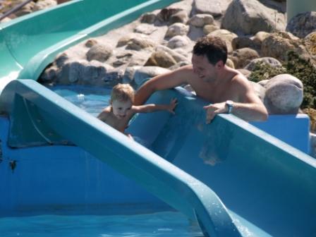 Выехать планировали 23 августа после обеда (на утро запланирована одна важная встреча). 22 августа в 6 вечера становится известно, что встреча перенеслась на пару недель. В 8 вечера в ресторане «Вареничная №1» (вторая уже блин реклама в отчете) принимаем решение – ехать прямо сейчас. Вещи не собраны, лопаем вареники и едем домой собираться. Итак, старт – на часах 00.00, значит, выехали мы 23 августа. Ночной Киев – насыщенный трафик, заливаем полный бак нашей Маси (вареники ж не ест), Верона с Мишкой и Скусей уже мирно храпят в обнимку на заднем сидении. Дорогу по Украине описывать бесполезно – но поездка в траншее возле Львова (под Запытивым) конечно впечатляет. Около 12 мы в Берегово, границу проходим в Лужанке. Пограничники не заслуживают добрых слов – на нашей границе стоит 5 машин, мы просим пустить без очереди (аргументируя маленьким ребенком) – не пускают. На венгерской границе 4 очереди по 10-12 машин в каждой, едет очень медленно. И опять мне отказывают три пограничника, жара стоит жуткая. Четвертую (на свободном ряду, для дипломатов) я убеждаю, что нас нужно пустить без очереди, убеждаю в этом же и таможенницу рядом с ней. Но – вот засада, мы уже заехали в одну из очередей так, что очень неудобно будет выруливать в свободное пространство дипломатического ряда. Плюем, и ждем в своей очереди еще минут 20. Зато хоть таможенник не достает, вещи как в мае не выворачивает. Итого – час на обе границы. При такой жаре (около 30) – это немало. От границы до Ниретьхазы километров 70, оттуда до Будапешта идет автобан М3. Но! Он снова почему-то был открыт только на коротком участке длиной километра 4, а дальше указатели и конец дороги вынуждают нас снова рулить через ненавистный Полгар (40 км по сельской дороге). При этом на обратном пути участок автобана от Полгара до Ниретьхазы уже открыт. По дороге в Будапешт заезжаем в проверенный ресторан (городок Гёдёллё), наедаемся до отвала за смешную сумму в 15 евро. Будапешт встречает немаленькой пробкой на объездной (трасса М0), теряем минут 40. Дальше – по автобану М5 рулим на озеро Балатон. Конец этого участка пути (18-00 по местному времени) – в прибрежном городке Шиофок, в течении 30 минут находим подходящий для нас вариант – апартаменты за 30 евро, рассчитанные на две семьи, торжественно обещаем не спать в обеих спальнях. В нашем распоряжении – спальня с балконом, кухня, санузел и гостиная. До Балатона – метров 50, 5 минут пешком. Других вариантов – много, но нужно помнить, что конец августа для Балатона – уже off season. А в июле-начале августа стоит ориентироваться на 50-60 евро за апартаменты. Балатон – вот уж лужа так лужа. Напоминает одесские лиманы, пешком по пояс можно идти метров 300-400. Даже таблички стоят – мол прыгать в воду запрещено. Но – очень приятный песок на дне (такой себе твердый, абсолютно не противный ил, очень похож на посеребренный), для детей – благодать. В 8 вечера температура воды около 26 градусов. С удовольствием купаемся, а в районе 10 вечера на улице разряжается конкретная гроза – с шквальным ветром, молниями и жутким ливнем. Красотища!