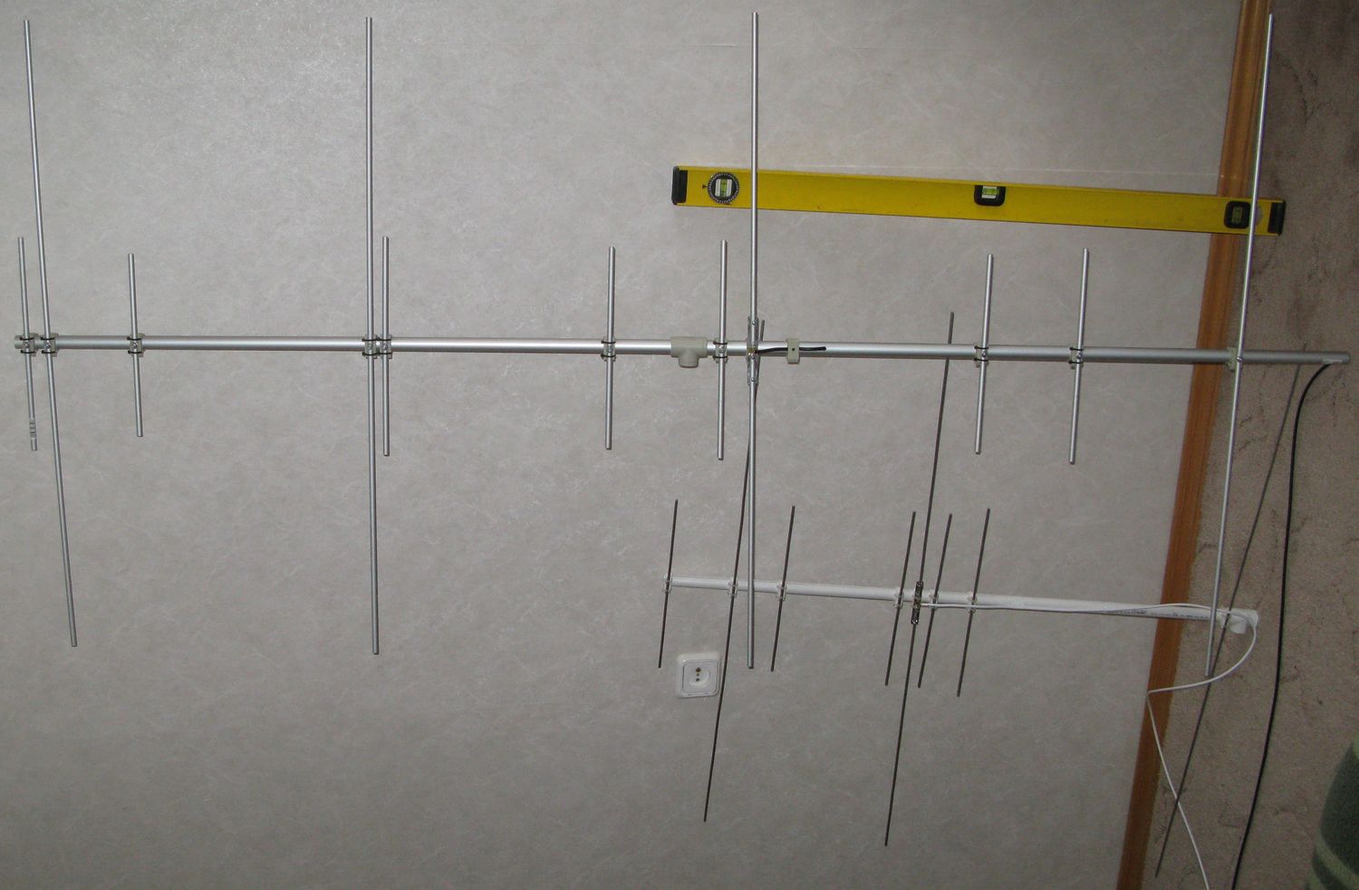 Внутри бума выполнено сращение кабелей RG-58 и RG-8 И из бума уже выходит толстый кабель. Надо отметить что даже такую небольшую антенну дома собирать проблематично. Более большие яги дома будет собрать практически невозможно