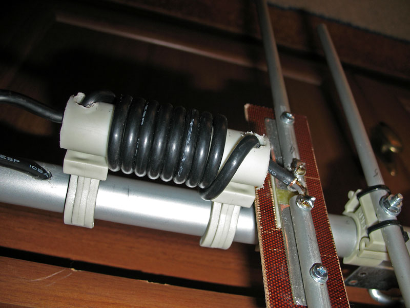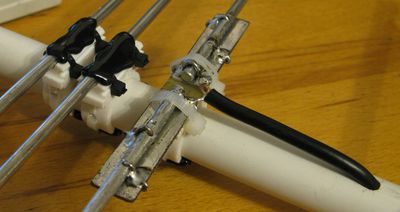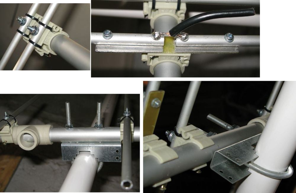 при зборке антенки поменьше я зафиксировал 4мм трубочки от провертивания и здвига полипропиленовым пистолетом. имже зафиксировал сквозную стяжку крепящую хомут от прокручивания. В самом хомуте пожег паяльником направляюшую канавку для прутка. На этой фотке хомуты белые электротехнические, как оказалась плохого качества. Те что в предидущем ответе - более надежные! Удачи!