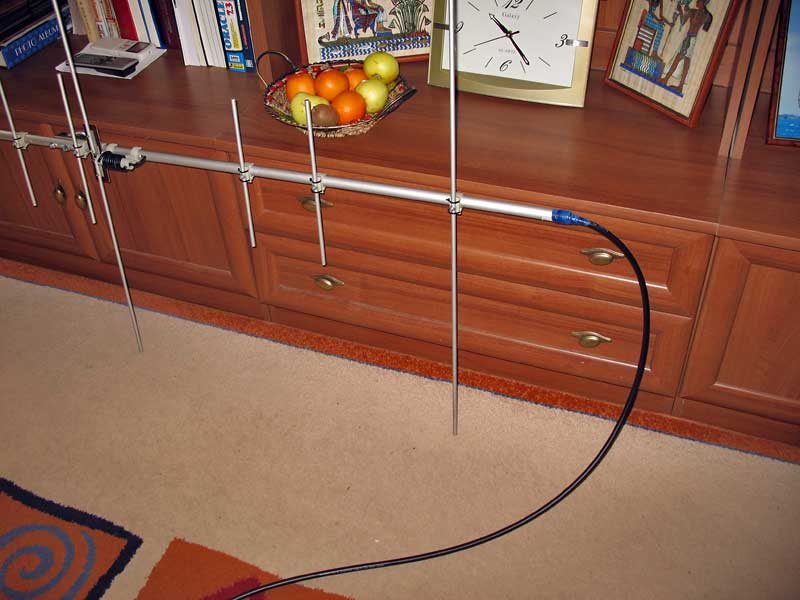 КСВ на 144 в нужном месте - в центре диапазона КСВ = 1 (и не вылазит за 1.2 во всем диапазоне). На 70 см - минимум КСВ ниже нужного - где то на 432 Мгц и он около 1.2, хотя за 2-ку КСВ не вылазит во всем диапазоне. Но эти измерения производились "с руки", высунув из окна. И не могут быть окончательными. Потому как все зависит даже от того как располагать антенну по отношению к стене дома.