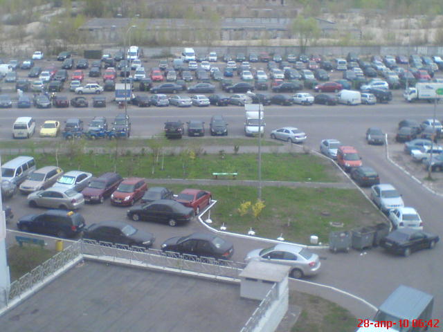 Ну если стоянка это то, что виднеется вдалеке, то там места нет на все это великолепие, ну как минимум на первый прикид. Я ж так полагаю, что не от хорошей жизни народ там машины раскидывает.