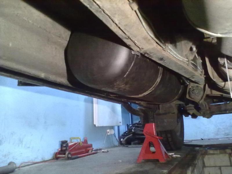 Баллон висит точно так-же как и бензиновый бак - в уровень с порогами. Это не лонжерон - это рама! Баллон далеко не самая нижняя точка.