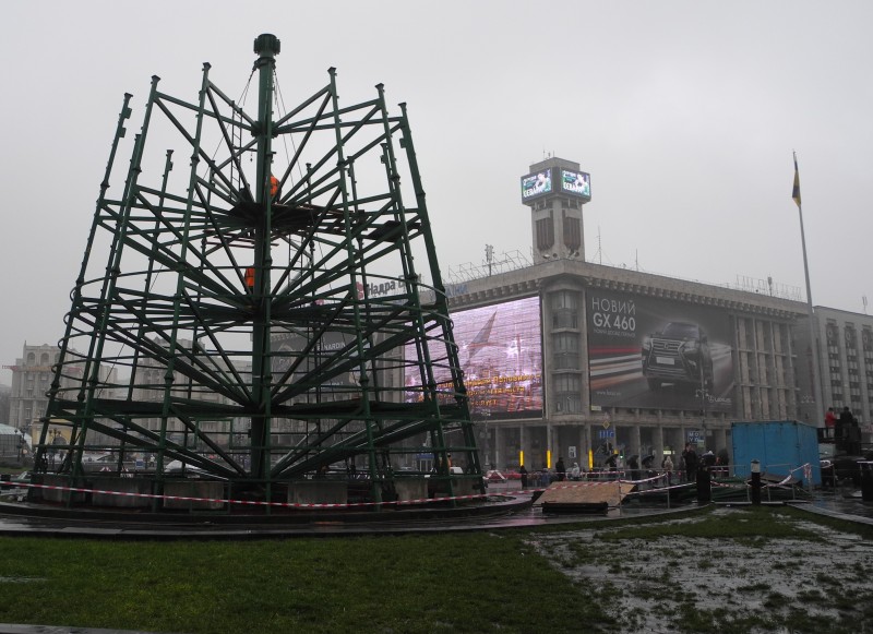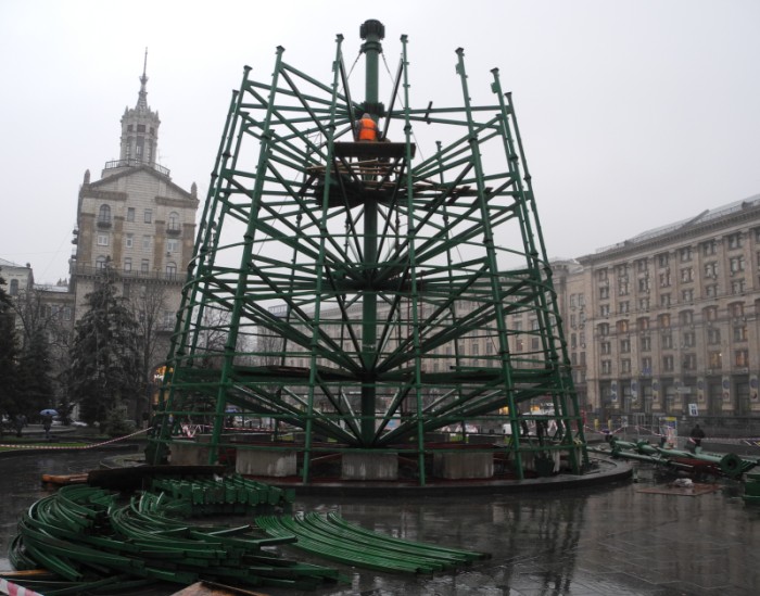На самом майдане подручные Попо-ва усиленным темпом возводят ... ЁЛКУ!